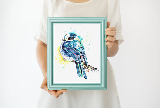 Gray Jay Art - Whisky Jack - Canada Jay - Colorful Watercolor Painting