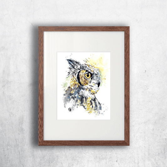 Great Horned Owl Colorful Painting - Owl Watercolor Art