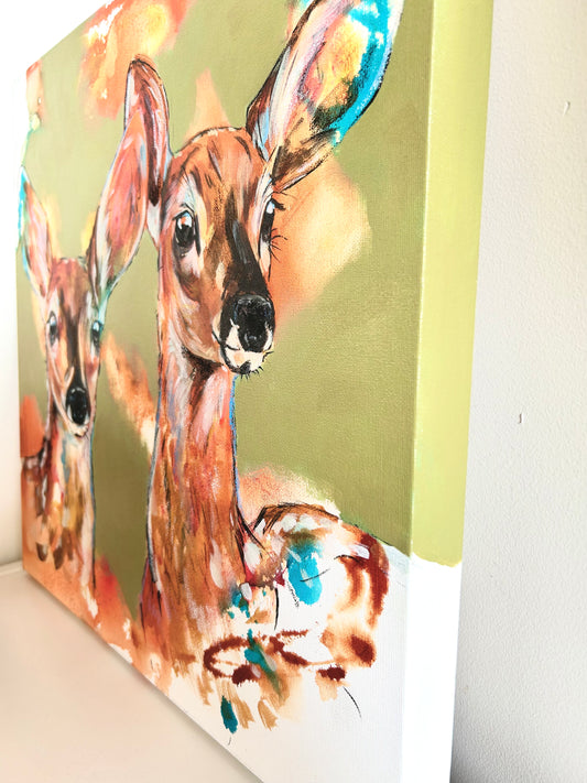 18" x 24" Original Watercolor Painting - 'Peekaboo Deer'