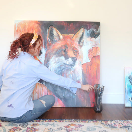 42" x 42" Original Painting of a Fox. - "Discovery"