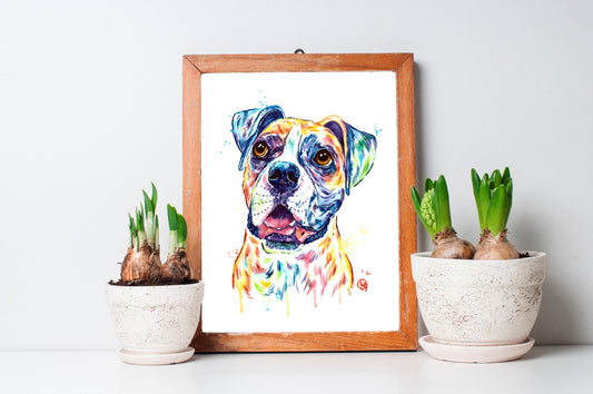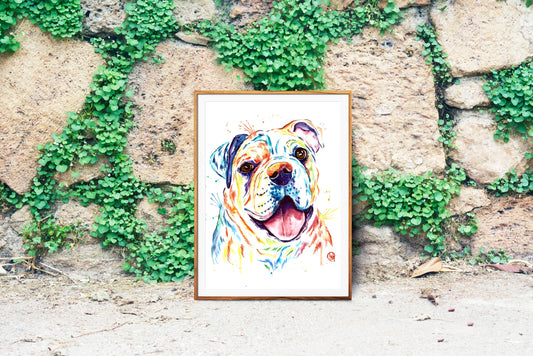 Bulldog Painting - Bulldog Colorful Watercolor Pet Portrait Painting, titled Shelby Rue