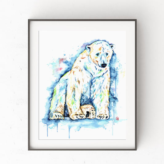 Polar Bear Painting - Polar Bear Colorful Watercolor Painting, titled Like a Boss