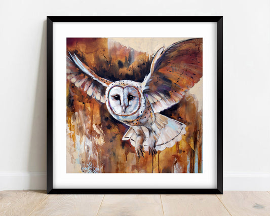 Art Print of an Owl - Golden Flight by Lisa Whitehouse