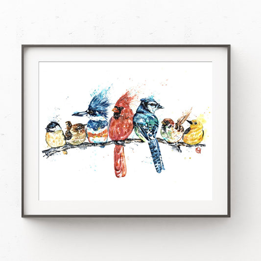 Bird Artwork - Birds on A Branch "Peeps" Watercolor Art Print