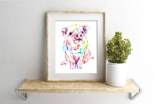 Cute Pig Painting - Pig Watercolor Painting Art Print