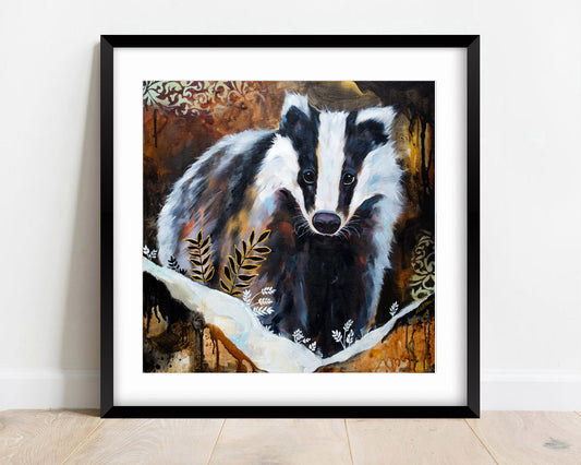 Art Print of a Bdger - Beneath the Bramble by Lisa Whitehouse
