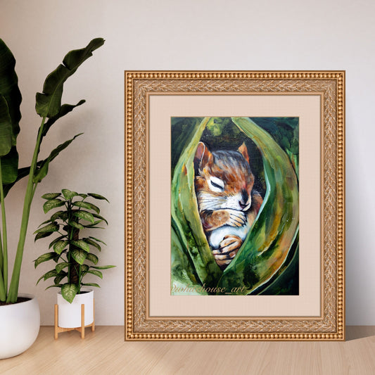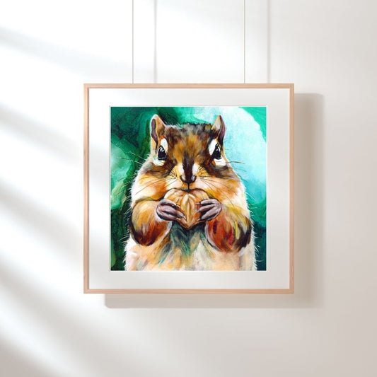 Chipmunk Painting - Art Print of Original Painting by Lisa Whitehouse titled "Tucked In"