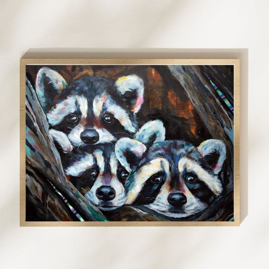 Raccoon Painting - Art Print of Original Painting by Lisa Whitehouse titled "The Best Things Come in 3's"