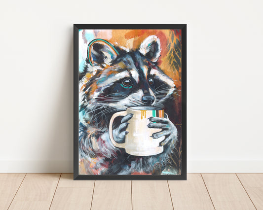 Racoon Art Print - Acrylic painting of a Racoon titled "Liquid Gold"