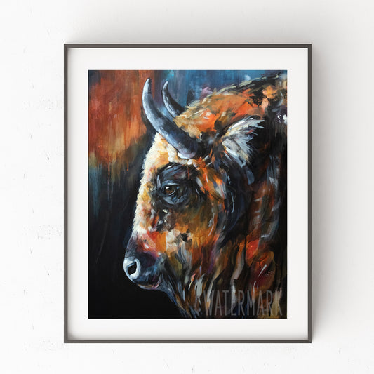 Bison Painting - Art Print of Original Painting by Lisa Whitehouse titled "The Night Watch"
