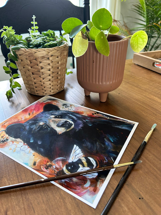 Black Bear Mix Media Painting by Lisa Whitehouse titled "The Bears and the Bees"