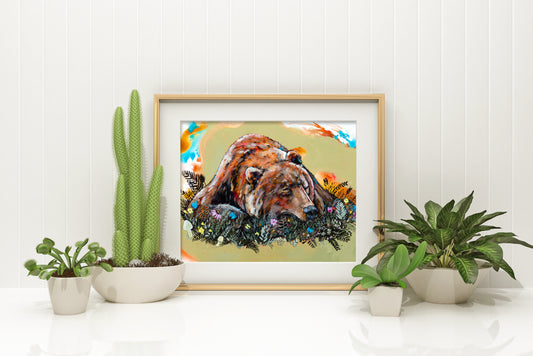 Brown Bear - Art Print of Original Painting by Lisa Whitehouse titled "Wild Bloom"