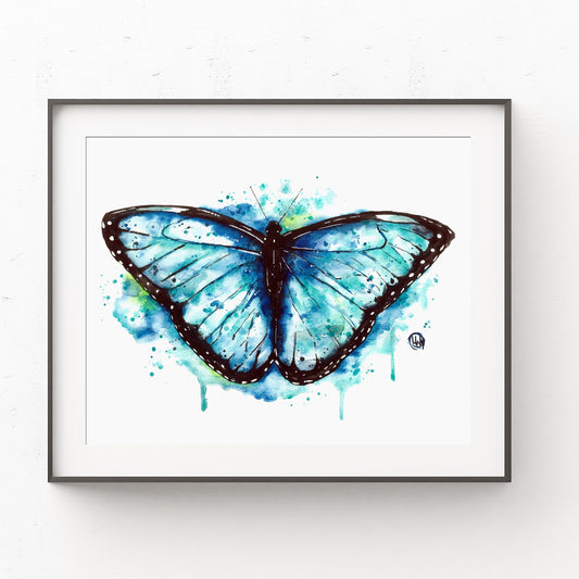 Blue Butterfly Painting - Blue Morpho Butterfly - Colorful Watercolor Painting