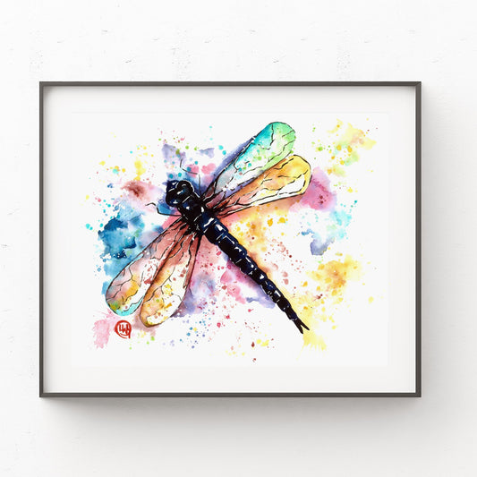 Dragonfly Art - Dragonfly Colorful Watercolor Painting