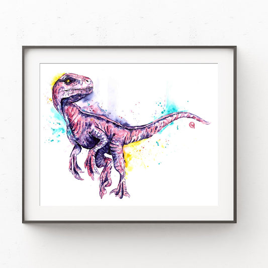 Kids Room Decor Velociraptor / Raptor Watercolor Painting Art Print