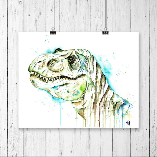 Dinosaur Art - T-Rex Watercolor Painting - Tom the T-rex