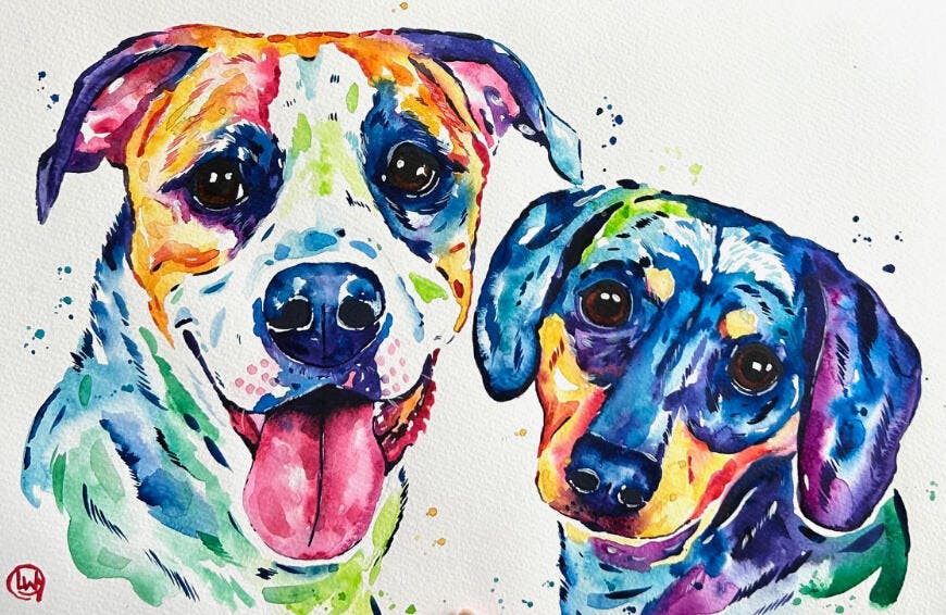 This listing is for a portrait of your pet done in my colourful, splashy style!